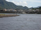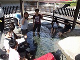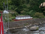 | 食べてないのだが、美味いのか!? | お次は修善寺界隈へ移動〜。河原の中にある建物は・・・? | 足湯で〜す!まだ元気だった頃の彼(笑)。 | ここが修善寺。あまり大きくはなかったな。 | 参拝するは善男善女・・・ばかりではないかも(爆)。 |
