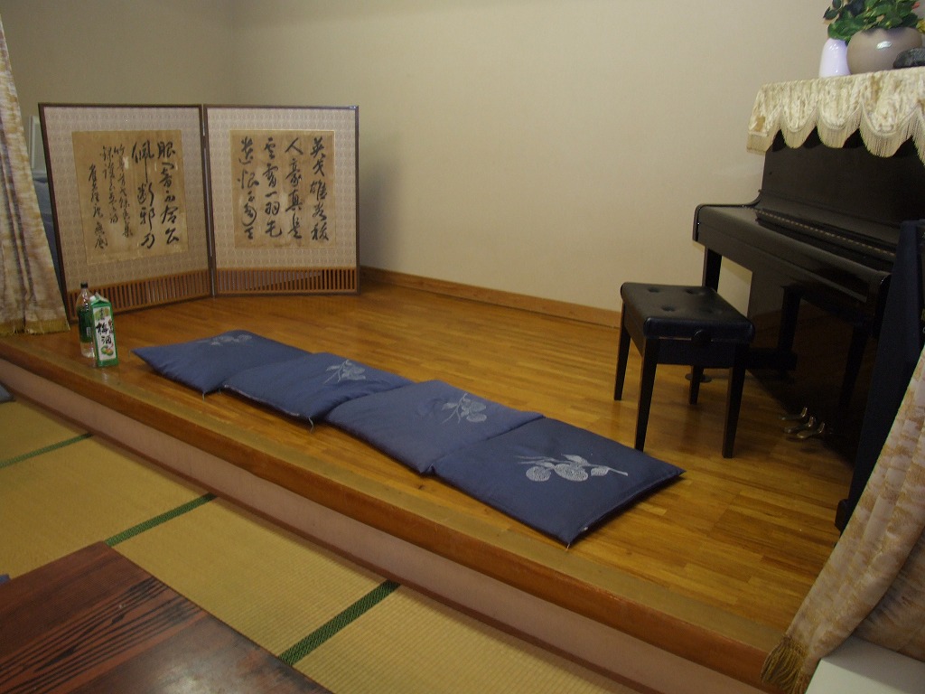 後に悲劇(?)の舞台となる和室! | 夕食です・・・これだけ?(爆) | 宴会場を借りました。ただ今準備中! |